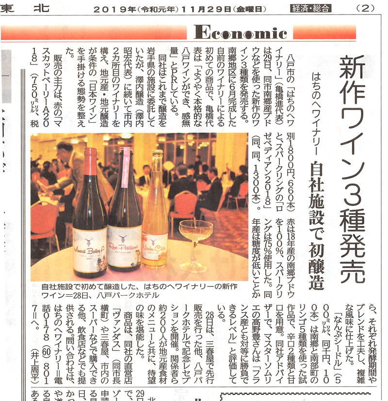 新作ワイン3種発売 新聞記事掲載されました